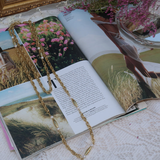 Gold-Tone Pearl Bar Link Chain Necklace