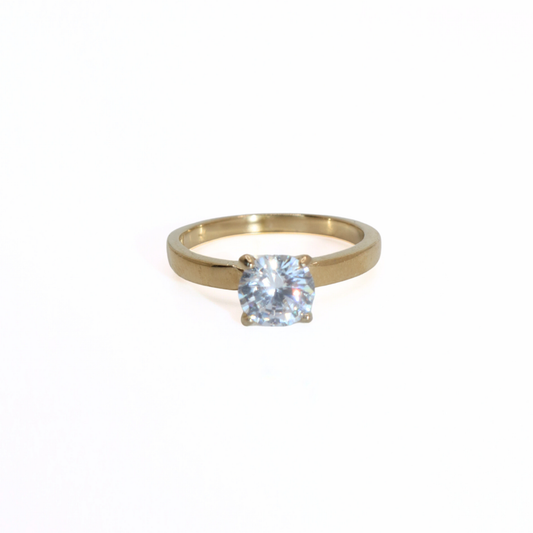 Gold Tone Stainless Steel CZ Solitaire Ring