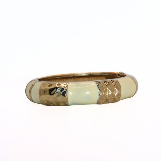 Vintage Gold Tone Cream Enamel Studded Bangle