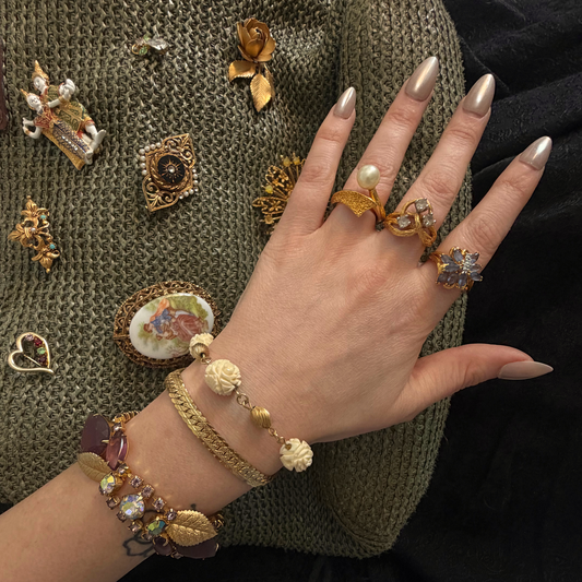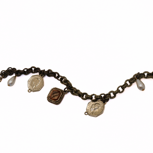 Vintage Reworked Antique Gold Coin & Pearl Charm Bracelet