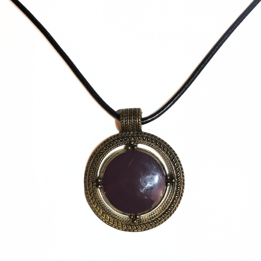 Vintage Bronze-Tone Purple Stone Medallion Necklace