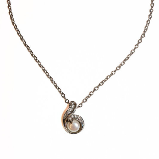 Avon Silver-Tone Chain with Rhinestone & Faux Pearl Pendant