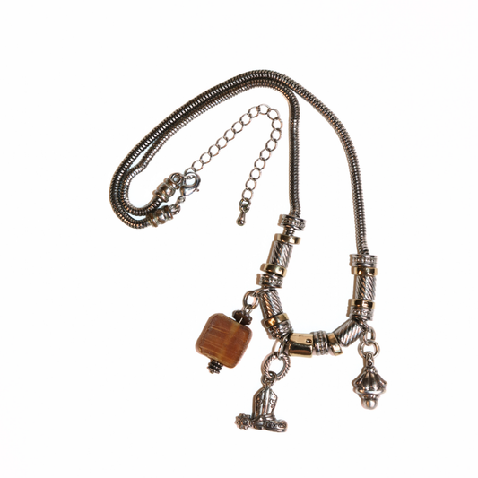 Silver-Tone Snake Chain Necklace with Three Charm Dangles