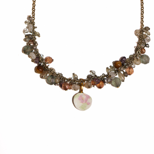 Vintage Reworked Blue Rose Charm Cluster Necklace