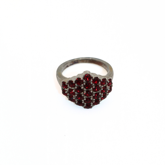 Vintage Copper Gunmetal Deep Red Crystal Cluster Ring