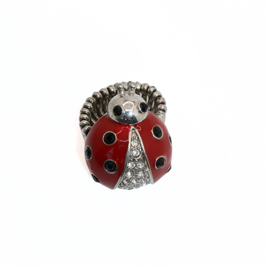 Vintage Silver Tone Adjustable Enamel Ladybug Statement Ring