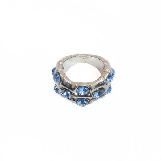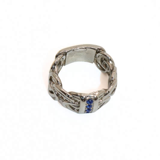 Vintage Stainless Steel Blue Crystal Wide Band Ring