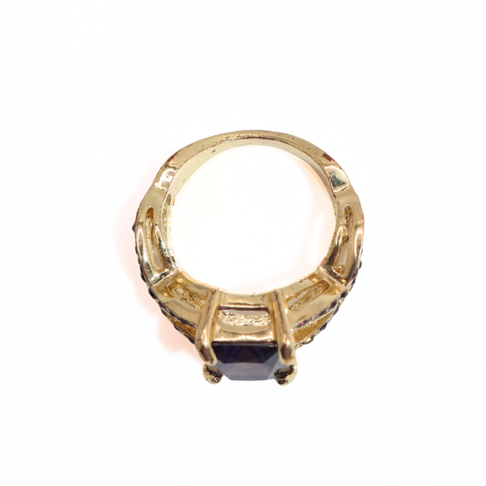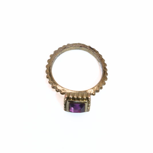 Vintage Oxidized Gold Tone Purple Stone Square Ring
