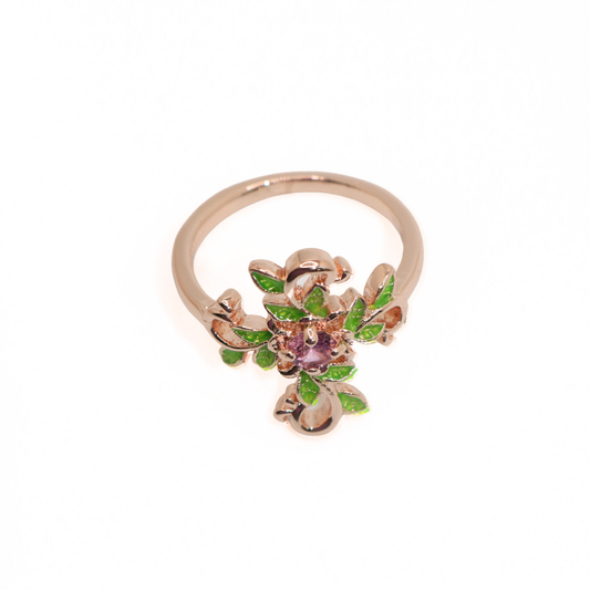 Vintage Rose Gold Tone Enamel Floral Vine Ring