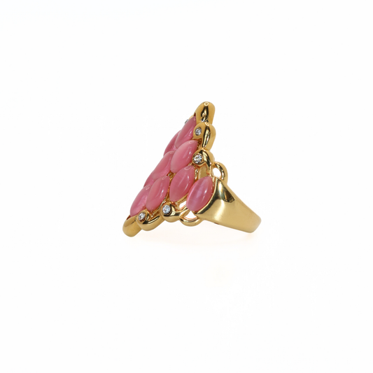 Vintage 316L Stainless Steel Pink Cat's Eye Navette Cocktail Ring