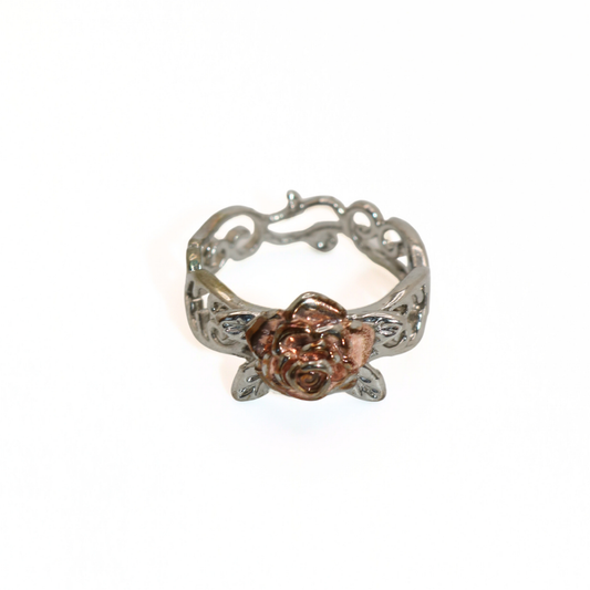 Vintage Two-Tone Rose & Filigree Band Ring