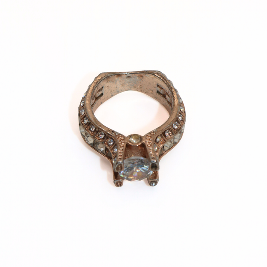 Vintage Rose Gold Tone CZ Solitaire Statement Ring