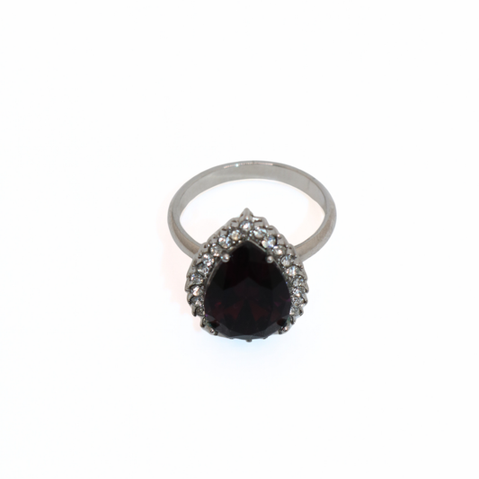 Vintage Stainless Steel Purple Pear Halo Ring