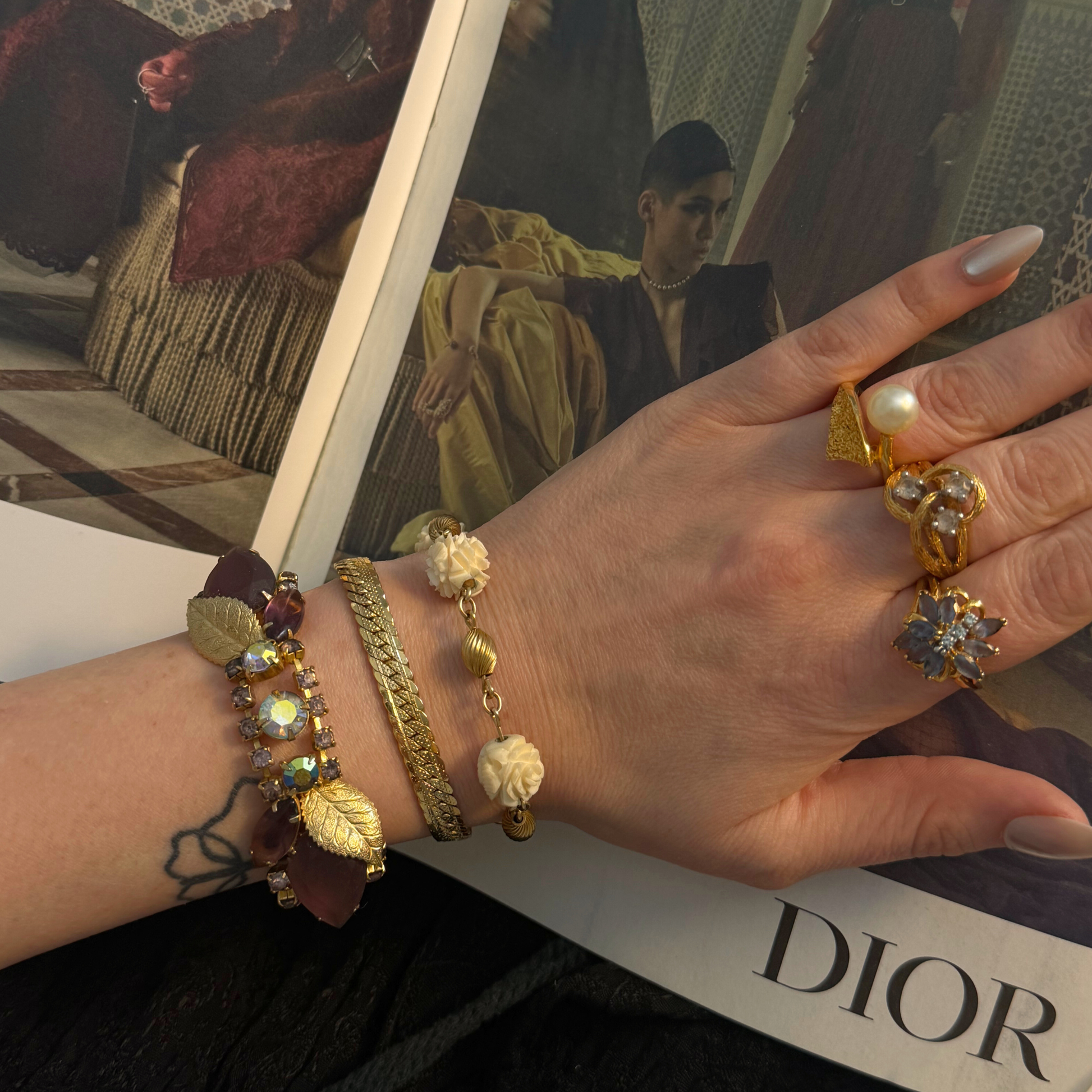 Vintage Pearl and Glitter Bypass Ring